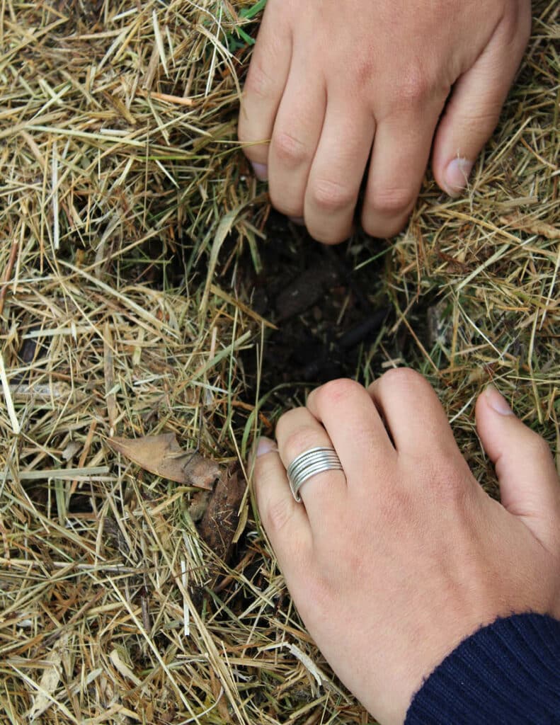 Dans ce cas-là, ne touchez à rien ! Inutile d’aller labourer, motoculter, piocher, bêcher. L’activité biologique fait le travail à votre place ! Enlevez simplement le tapis végétal de surface à l’aide d’une houe et d’une bêche. Apportez une grosse pelletée de compost au m² ou une poignée d’engrais organique si cette ressource en compost manque. Incorporez l’ensemble sur les 5 à 10 premiers centimètres. Profitez-en pour affiner, désherber les quelques racines, décaillouter si besoin et le tour est joué ! En avant pour semer et planter à la folie.